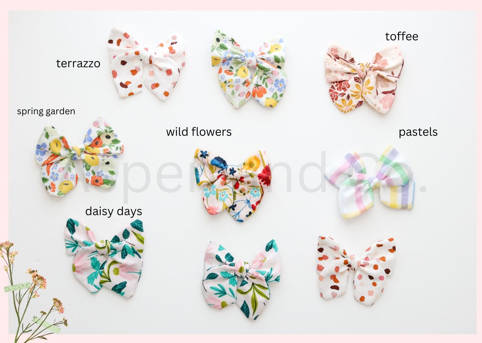 Floral Dog Bow Tie – Camel, Tea Rose, or Ochre – Boho Cotton Pet Bowtie for Collars