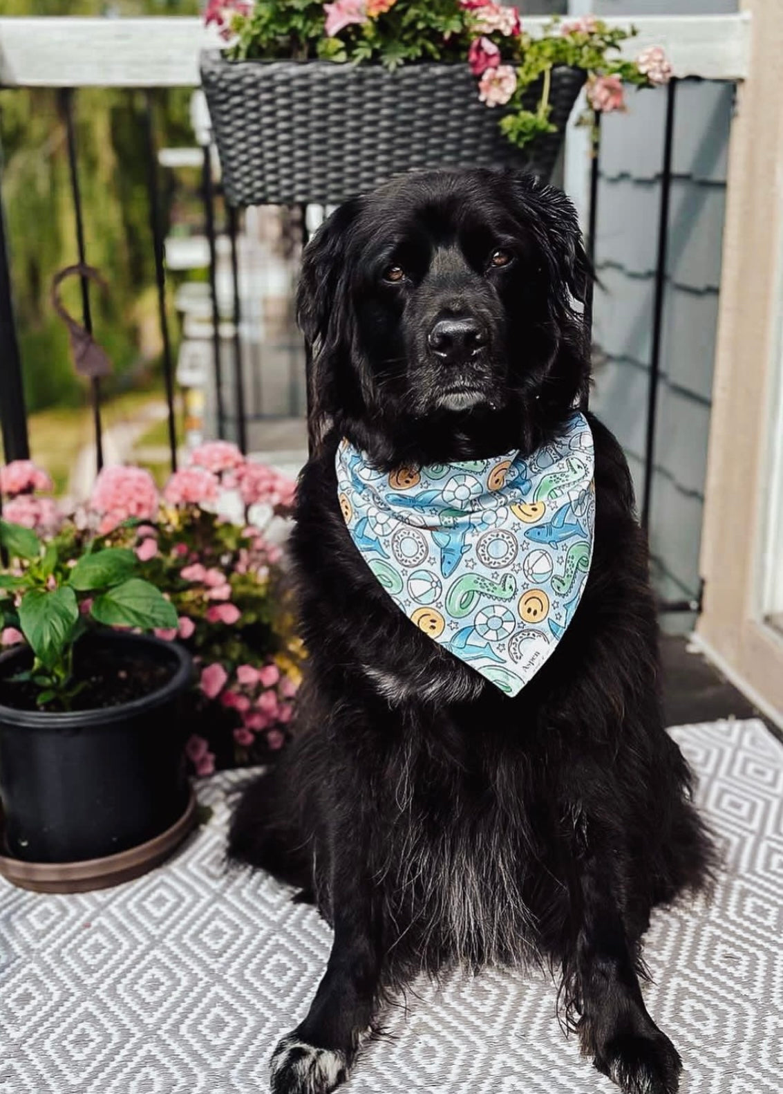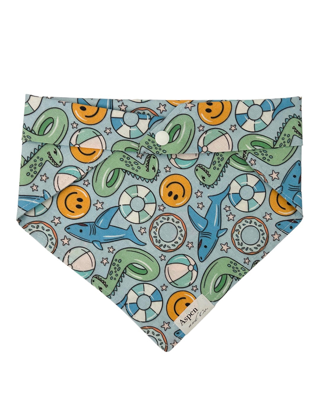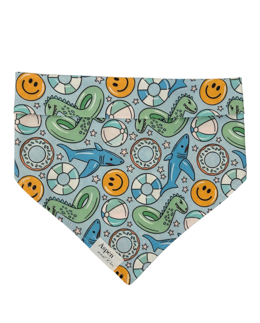 Get your furry friend ready for a paw-some pool party! They'll be the center of attention with the shark floaty, donut floaty, and beach ball print. Make every beach day a party and keep your dog cool and stylish.