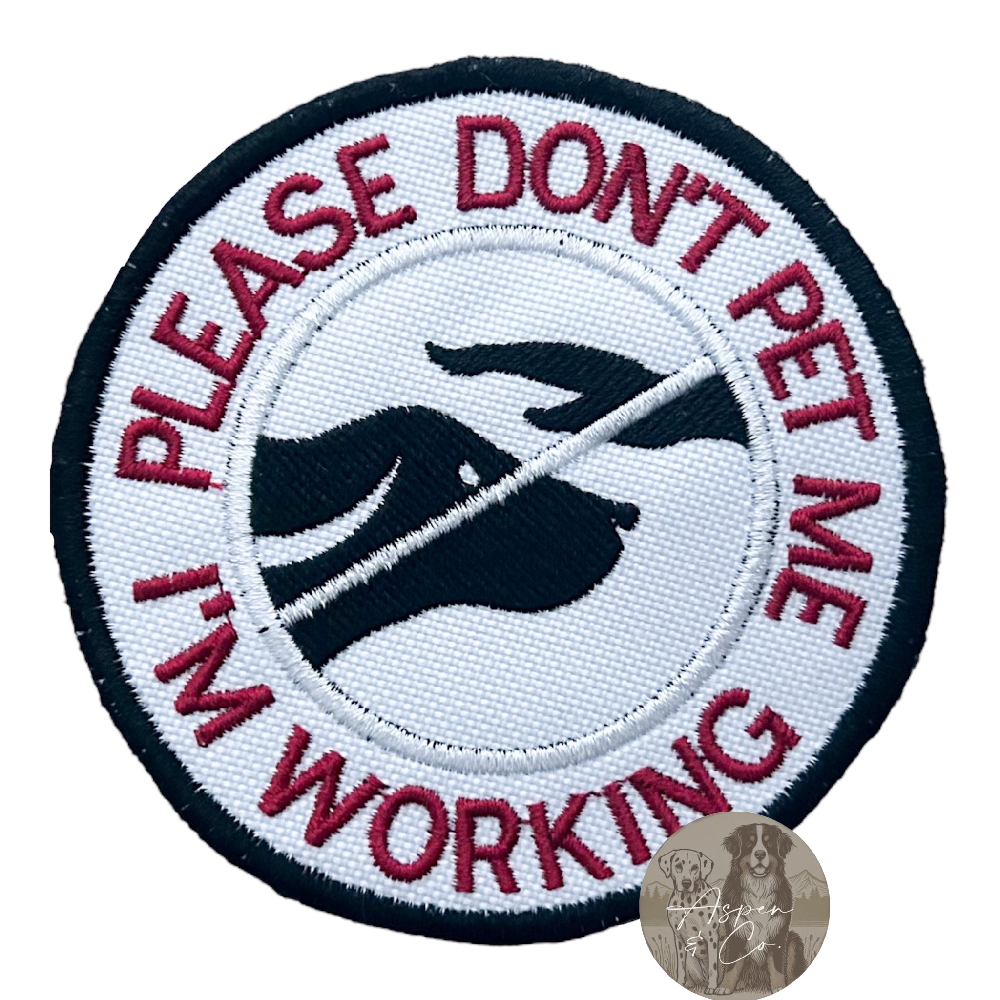 Make your dog’s boundaries clear with our “Please Don’t Pet Me I’m Working” patch. Designed with a bold “no petting” icon featuring a dog and reaching hand, this patch is ideal for training dogs or working dogs that need space.