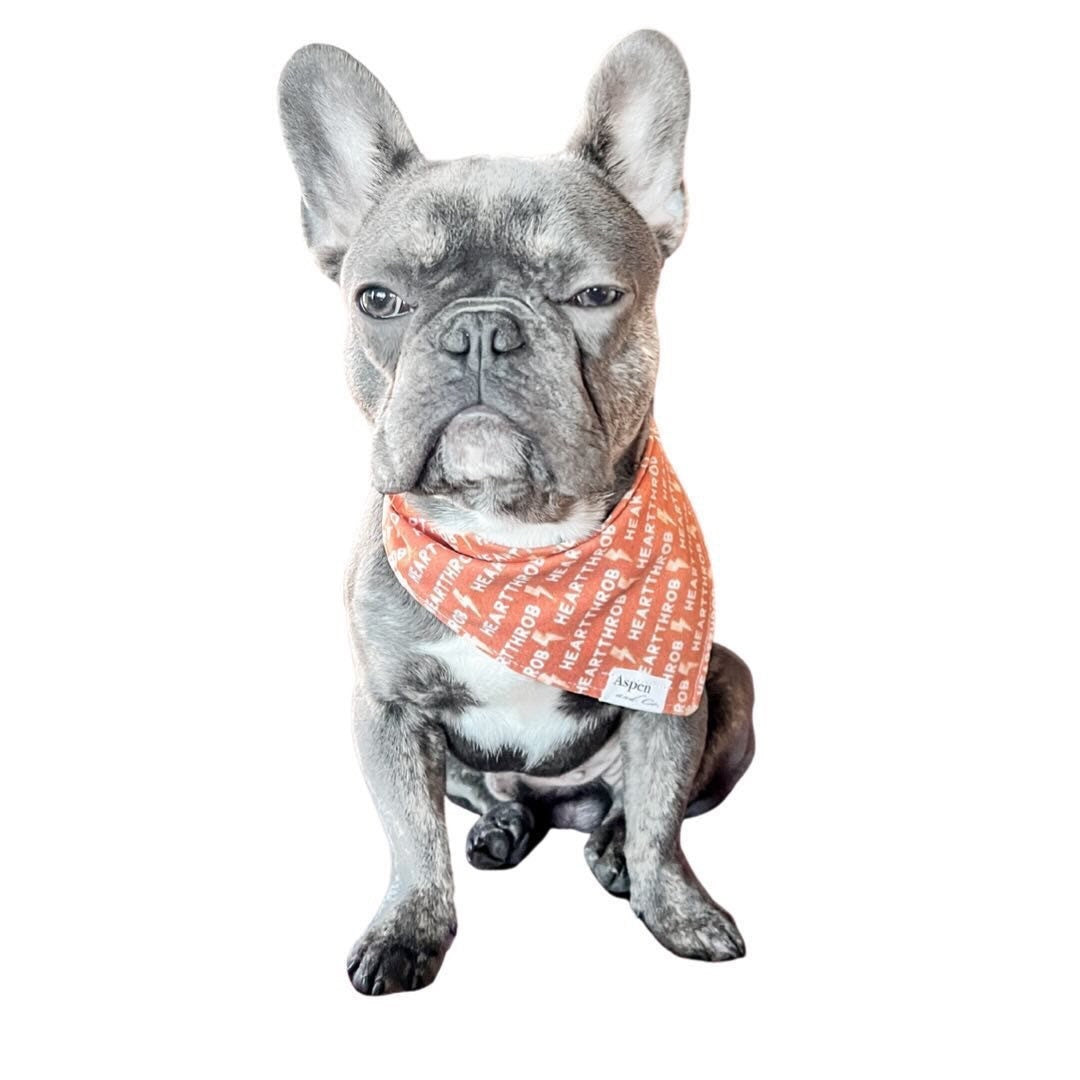This premium cotton dog bandana, "Heartthrob," is perfect for the heartbreaker pup in your life. Made from high-quality cotton, this bandana is both stylish and comfortable for your furry friend. Let them strut their stuff as they turn heads and break hearts with this must-have accessory.