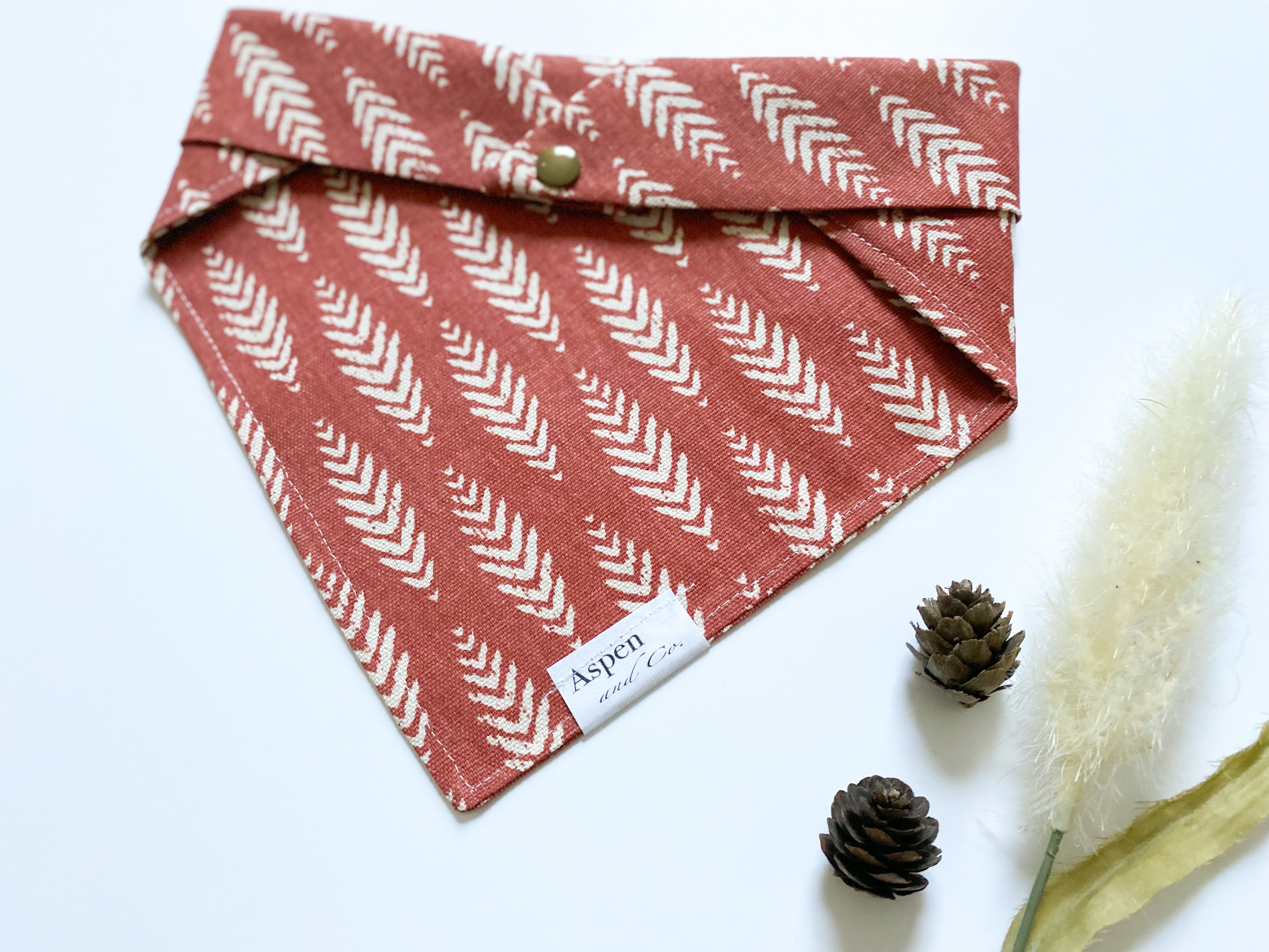 Crafted from a durable cotton canvas with a rustic background and delicate leaf print, complement your dog's style with a matching human keychain. Upgrade your pup's look with this tastefully designed bandana.