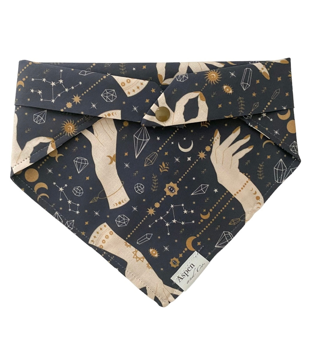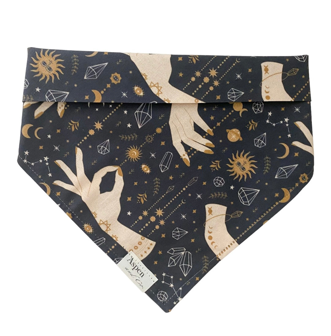 Embrace mysticism and enchantment with the Manifest Dog Bandana from our exclusive Enchantment Collection. Adorned with sparkling crystals and intricate symbols, this bandana is made from premium cotton. Let the sun's energy guide your furry companion on their next adventure.