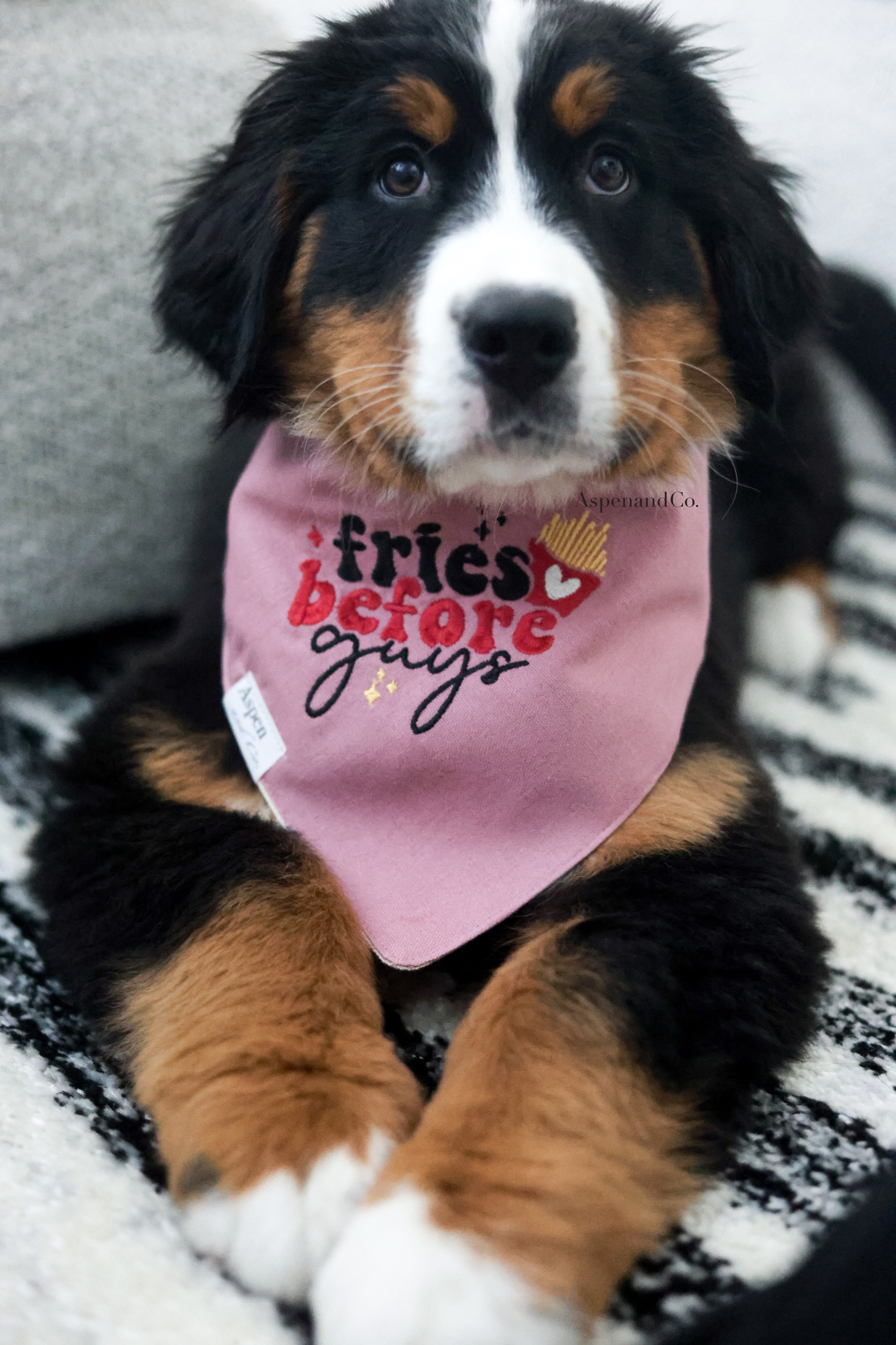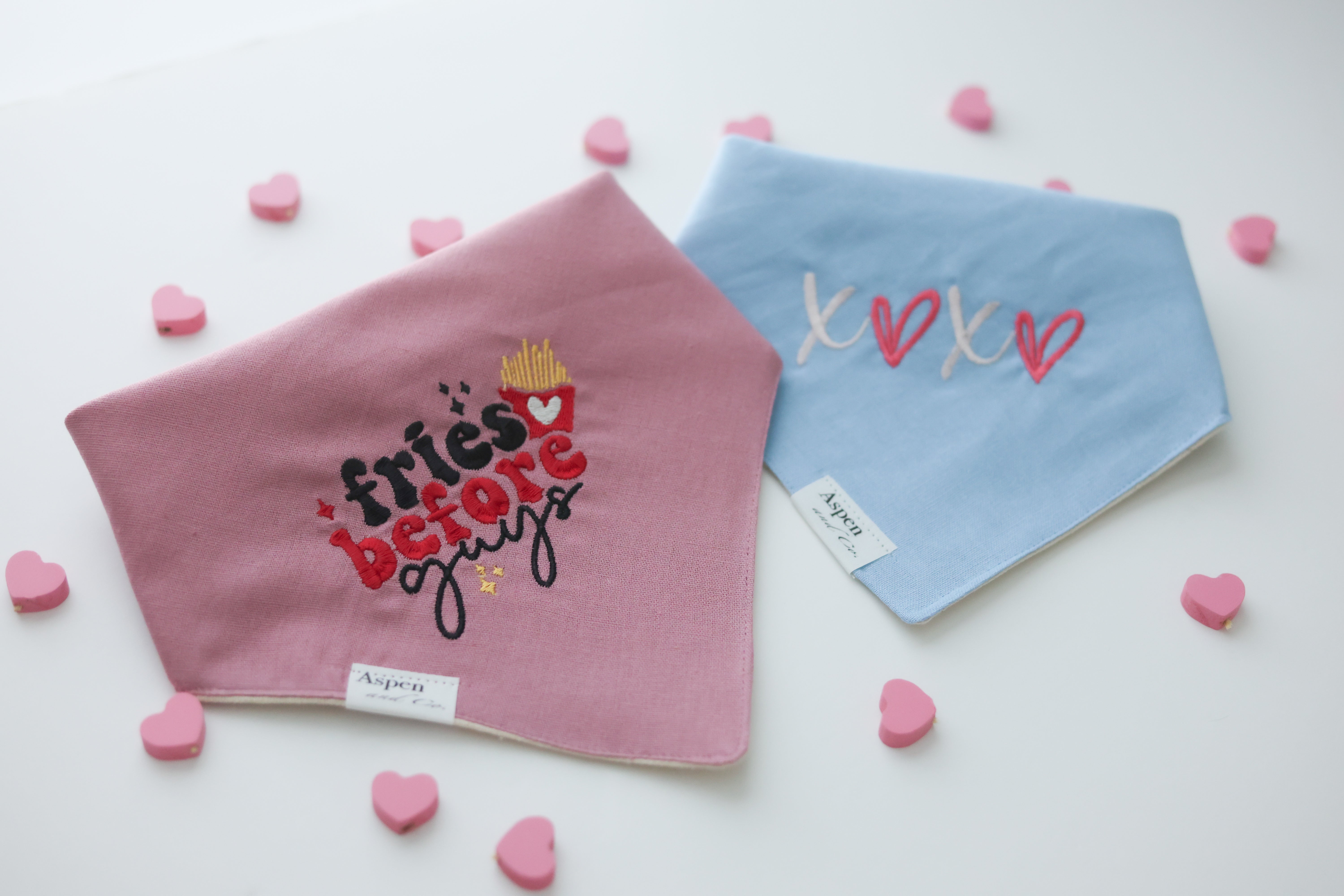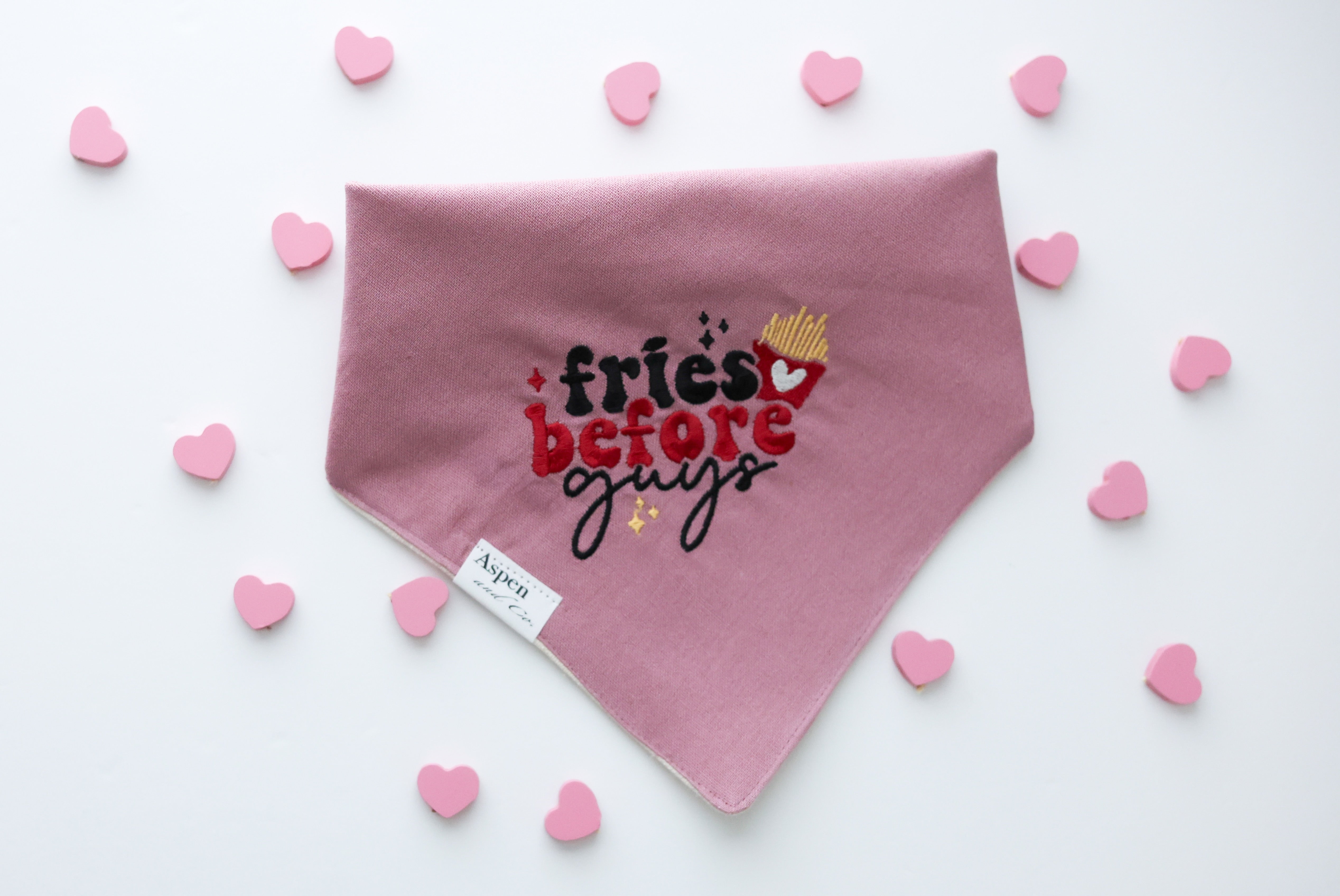 Embroidered Dog Bandana – Fries Before Guys Design, Linen