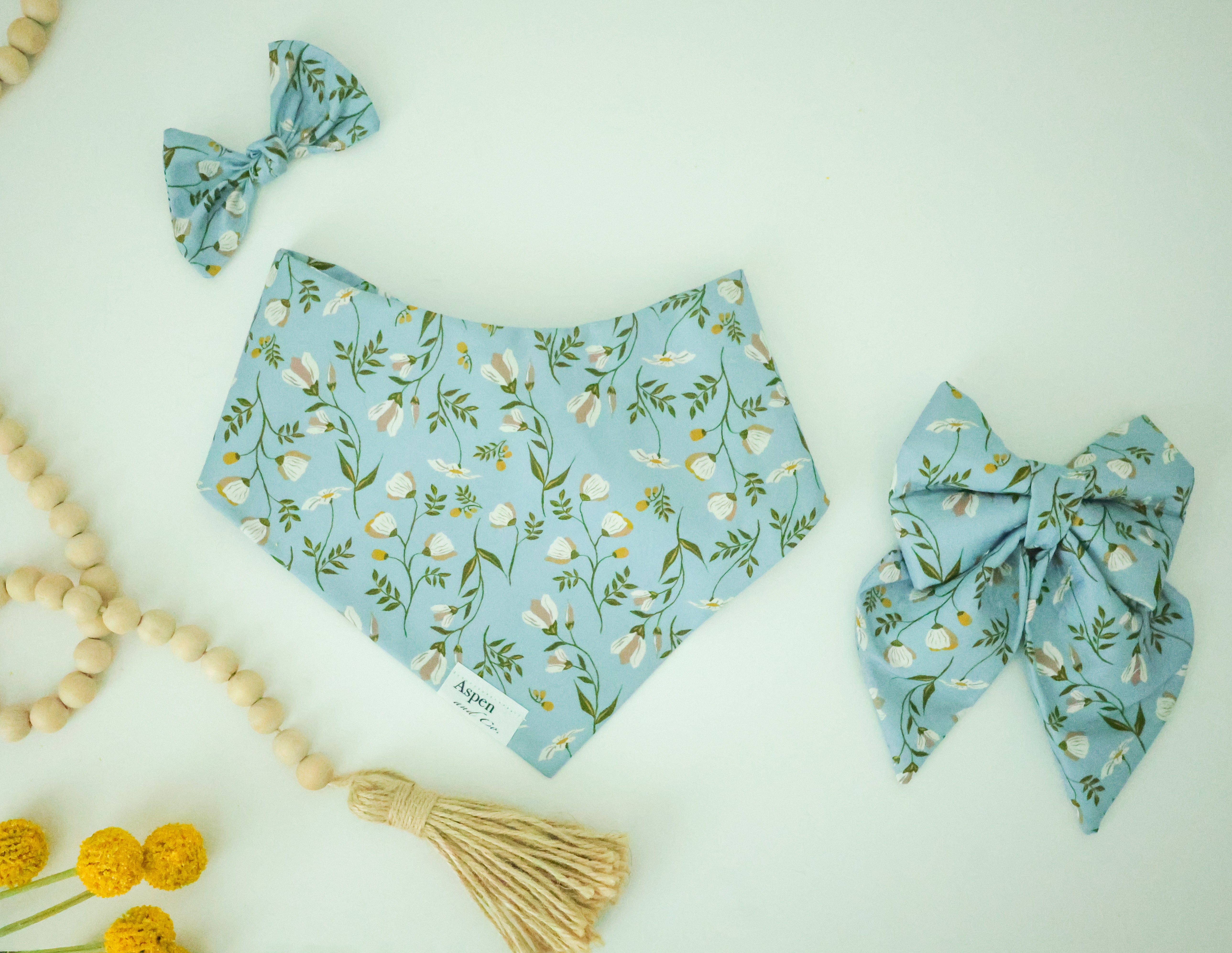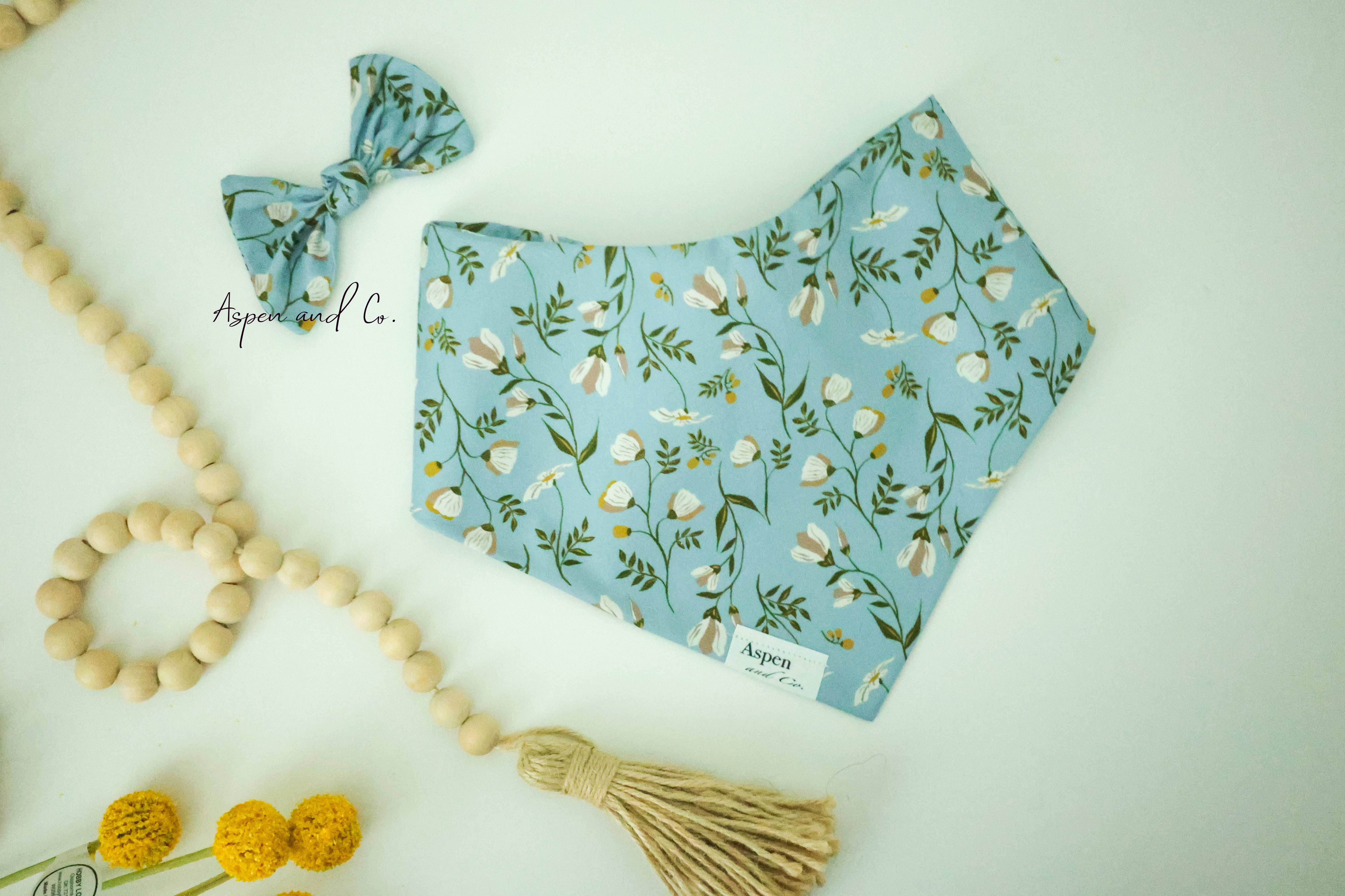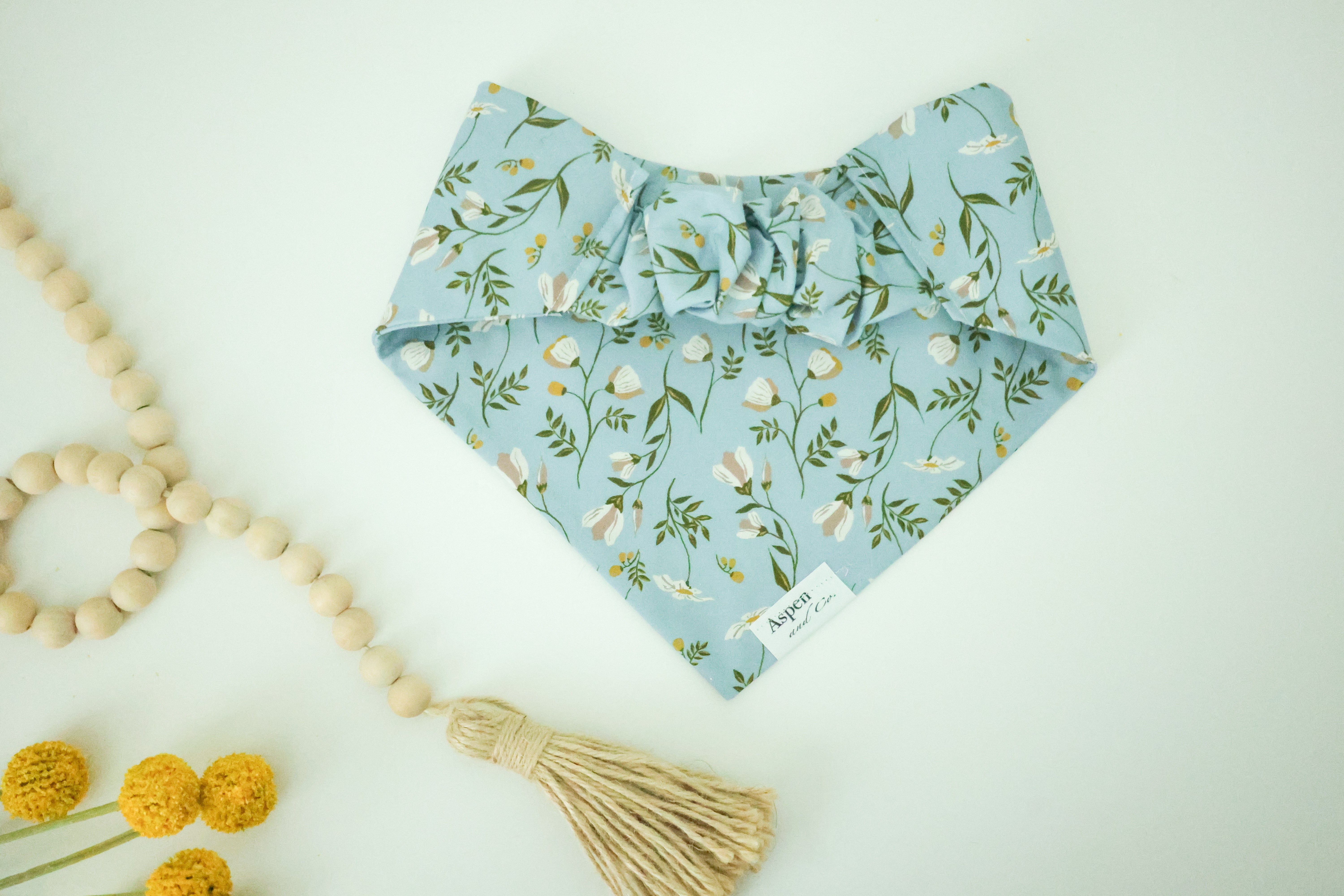 Elegant Blue Tulip Dog Bandana – Slip-On Scrunchie Bandana