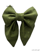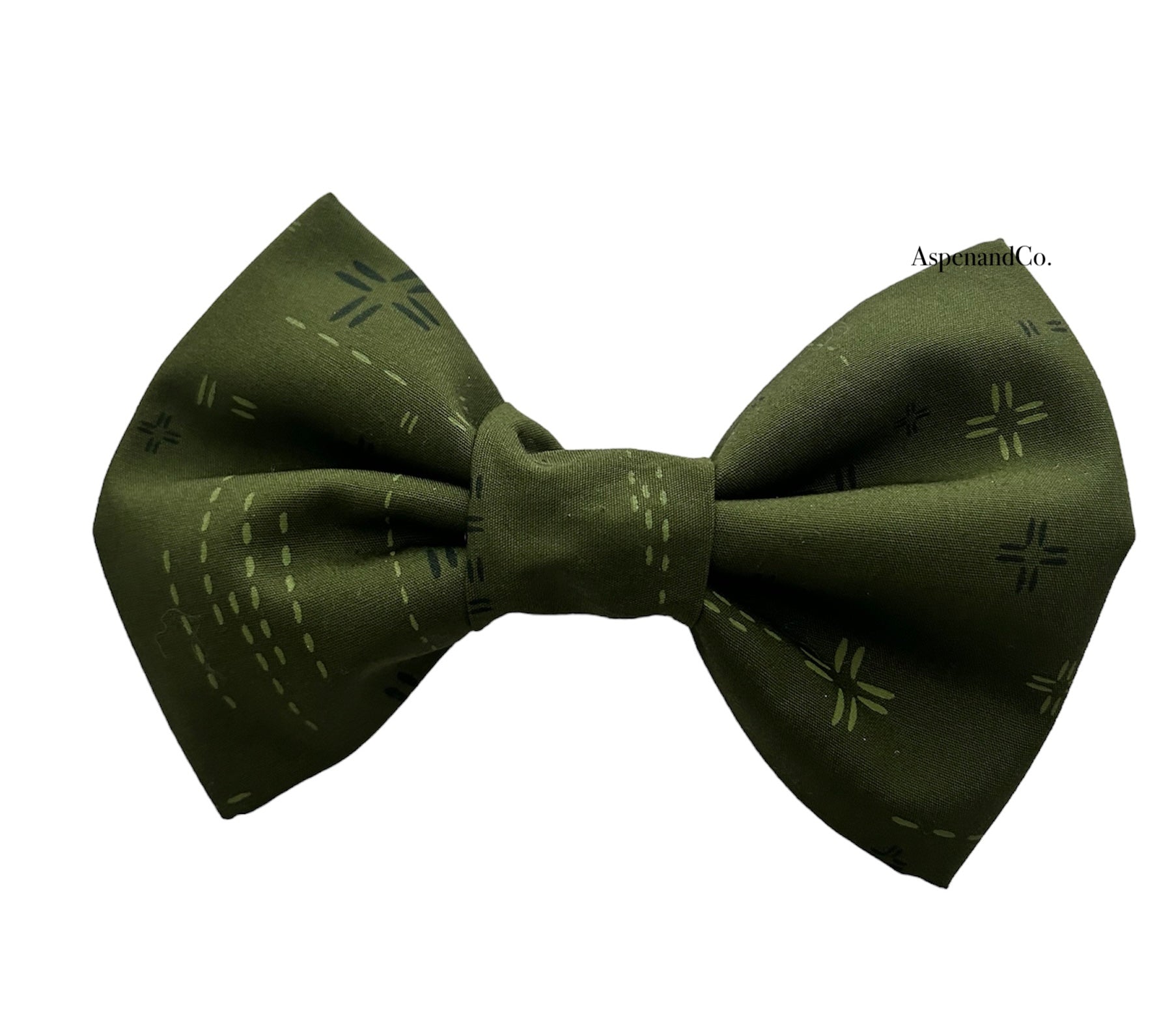 Fabric: Premium Cotton - Olive linear design. Includes interior lining make bow tie fluffy and preserve shape.