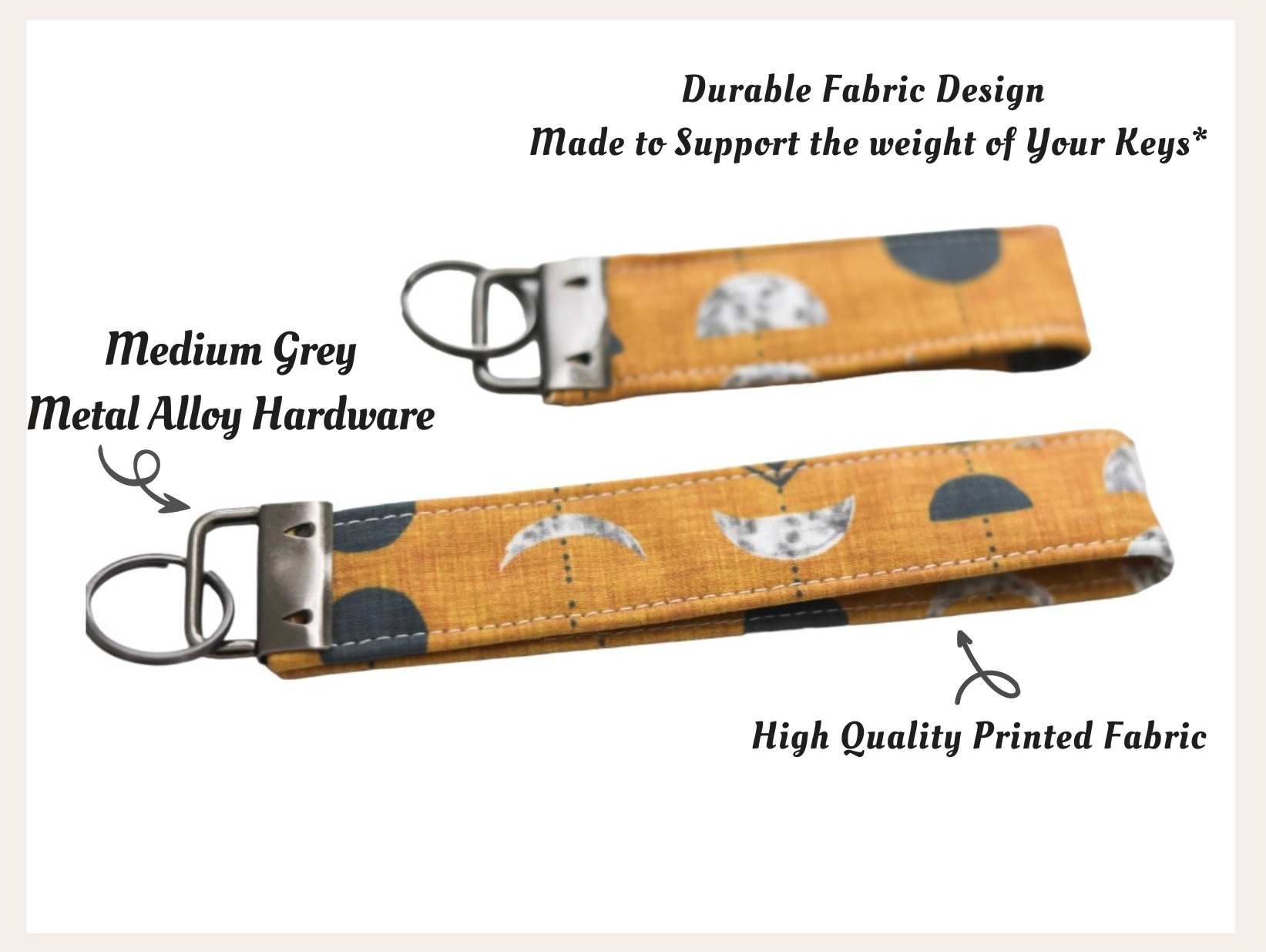 Key Fob Wristlet- Mustard Moon Phases