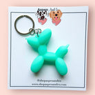 This mint-colored keychain is inspired by balloon animals and features a playful silicone dog charm. Attached to metal ring, it's the perfect accessory for any dog lover. Keep your keys organized in a fun and unique way with this dog keychain!