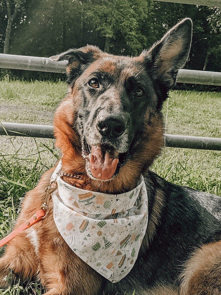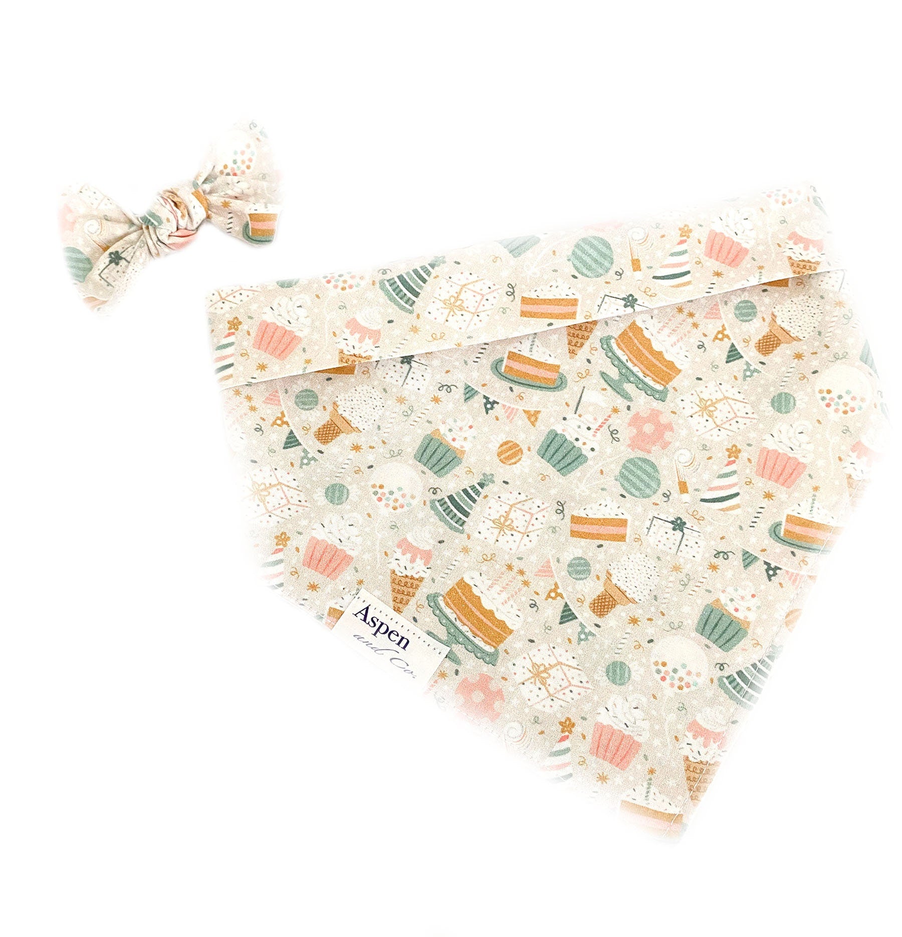 Celebrate your pup's special milestones with our  Paw'ty design. Made with premium cotton, it's perfect for birthdays, gotcha days, and any paw-ty celebrations. Let your furry friend join in on the fun with this chic bandana.