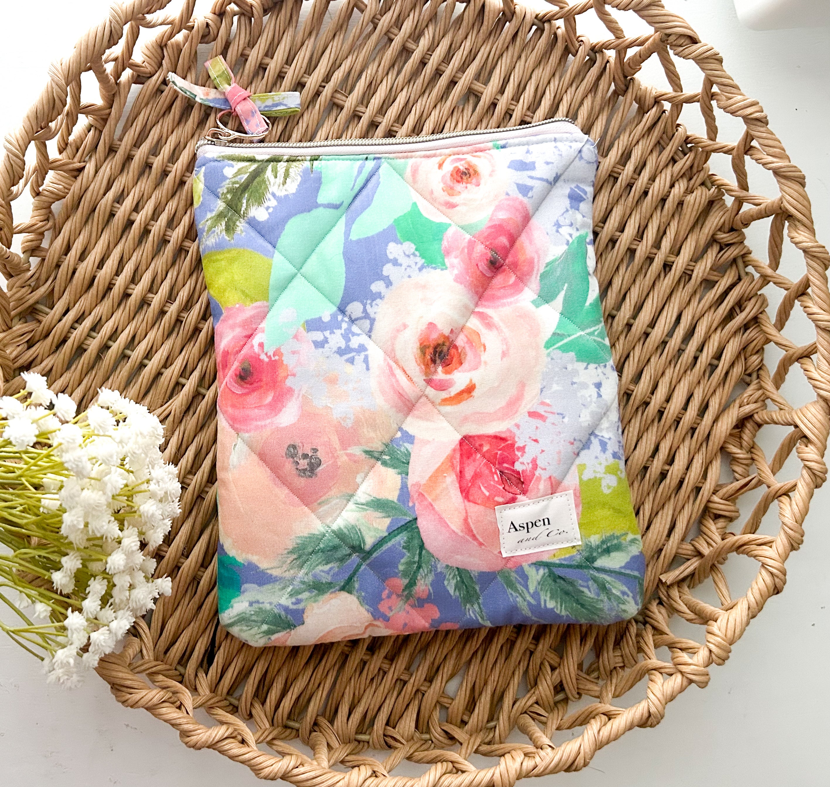 Floral Peony Quilted Book Sleeve