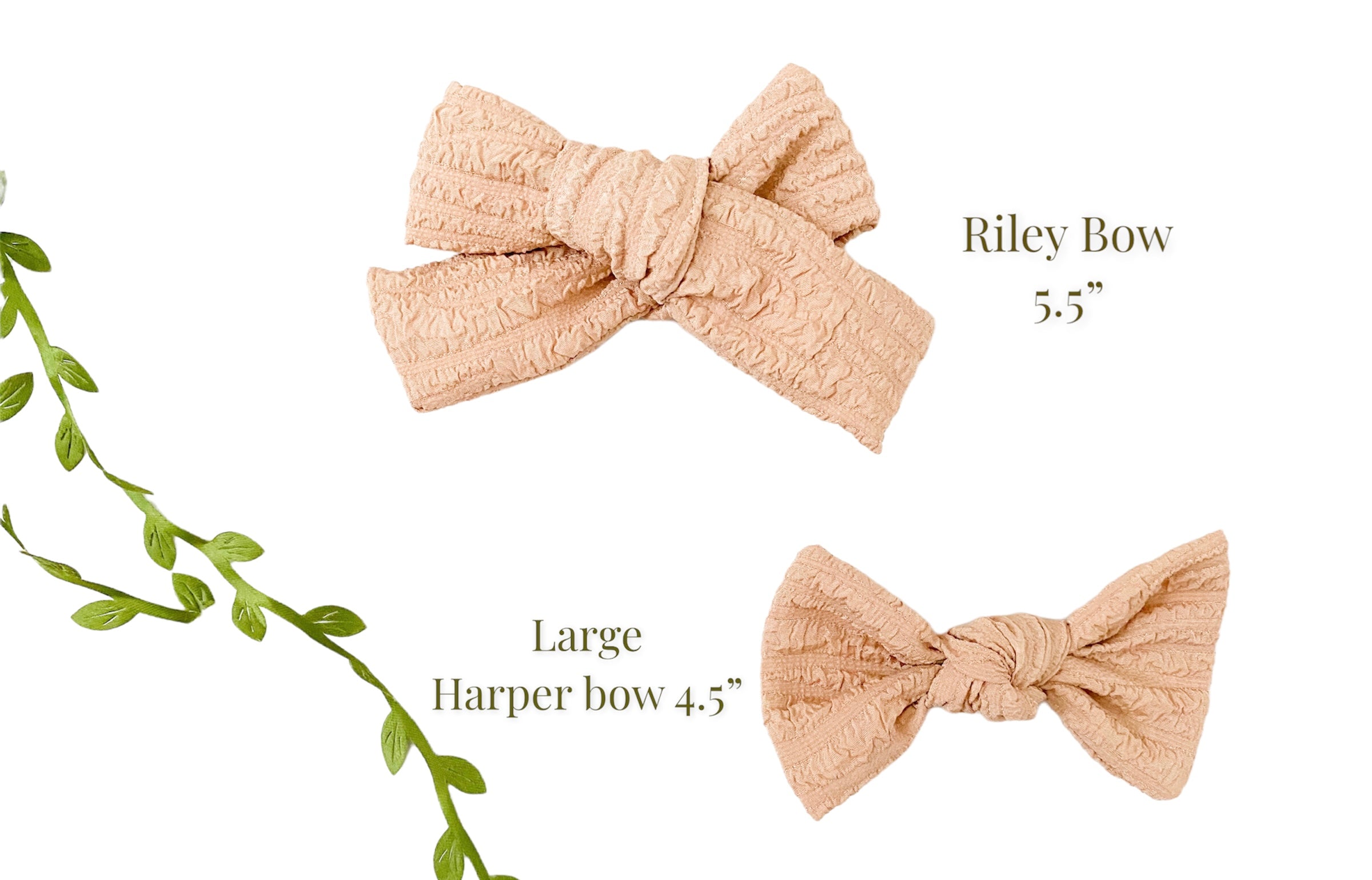 Bows-Resort Collection bows are made of 3 layers of fabric for a thicker more structured wear.