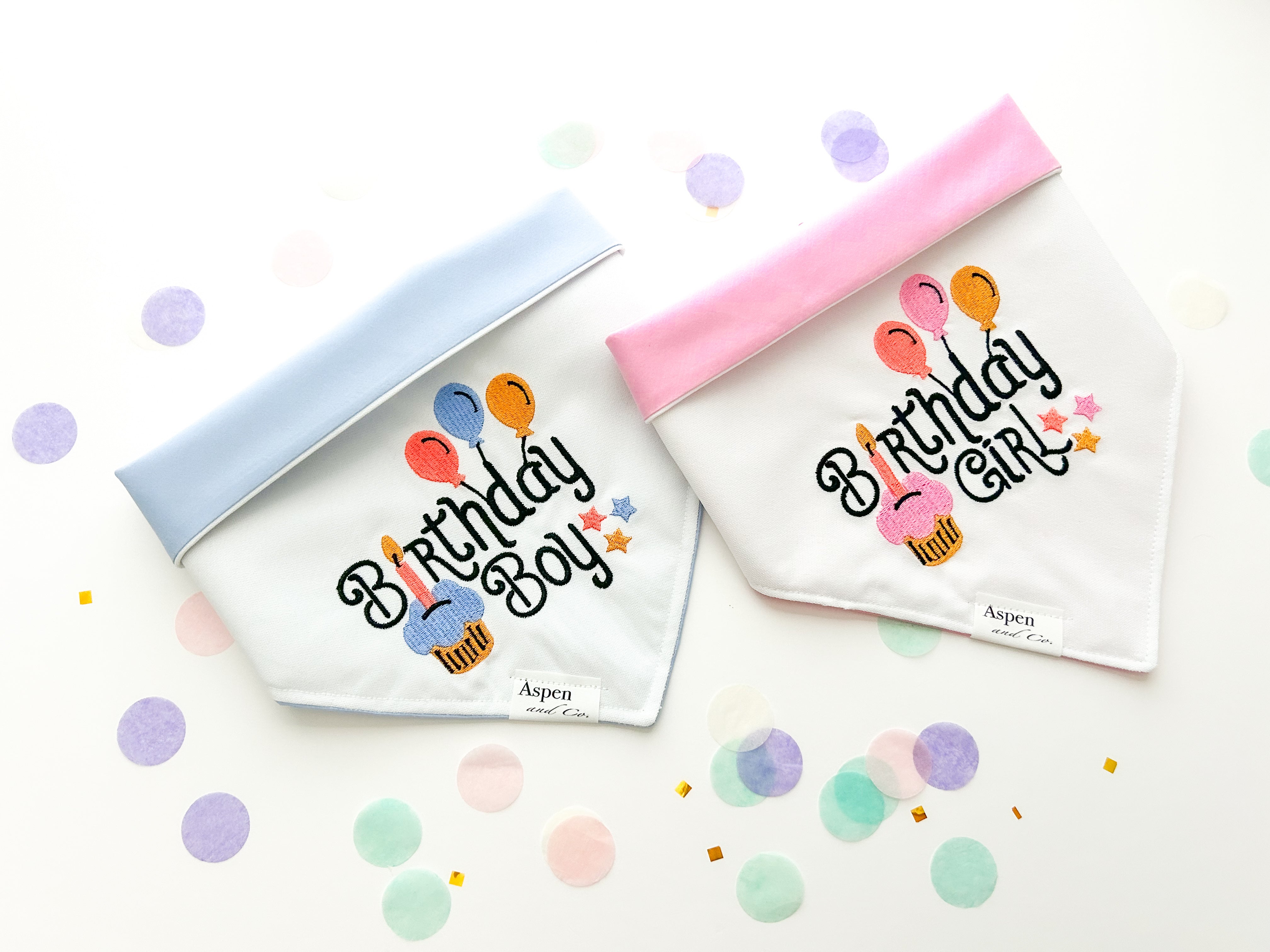 Birthday party, Gotcha Day, and celebration dog bandanas.