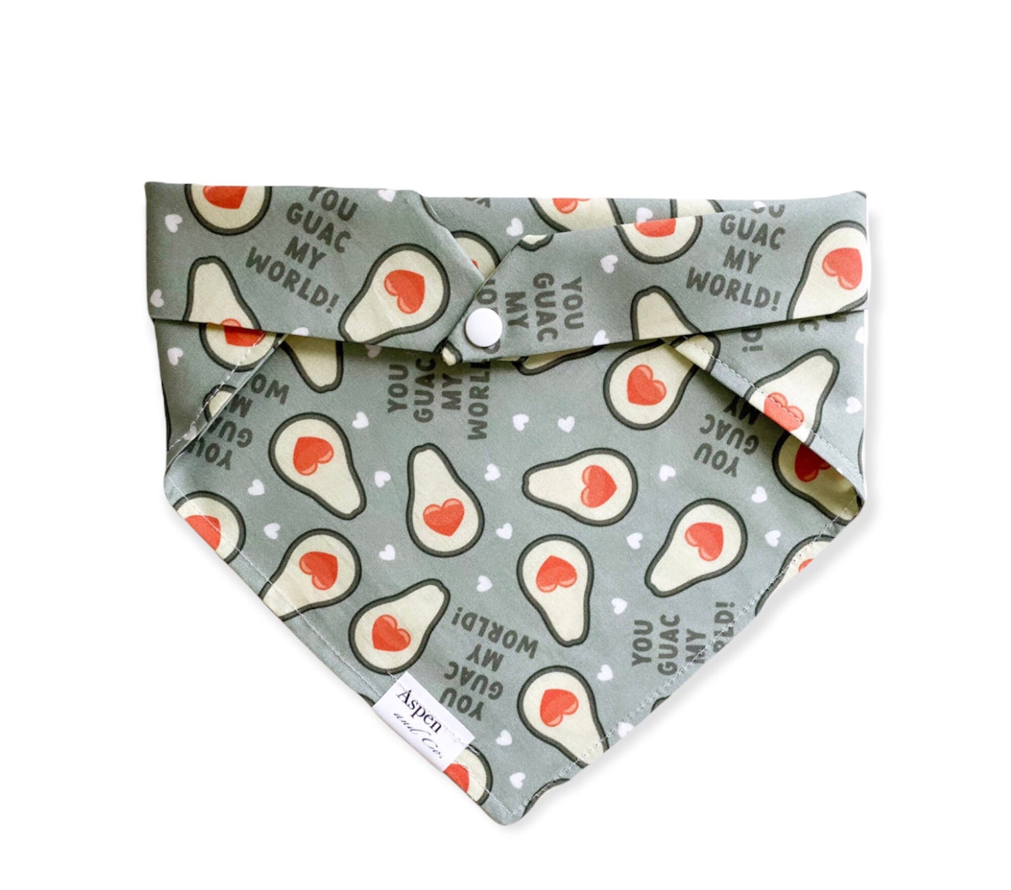 Embrace your love for guac (and your pup) with our You Guac bandana. Made from premium cotton with snaps, this bandana is perfect for both boy and girl dogs. With the playful message "You guac," and assorted avocados, your furry friend will surely be the talk of the park.