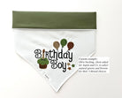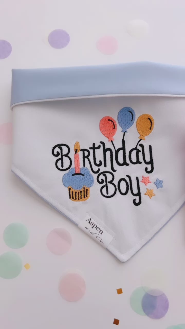 Make your dog's birthday extra special with our custom embroidered birthday bandana! Handmade and fully customizable, you can choose the thread colors and solid back reversible color. Give your furry friend a unique and personalized gift to make their day truly one-of-a-kind!