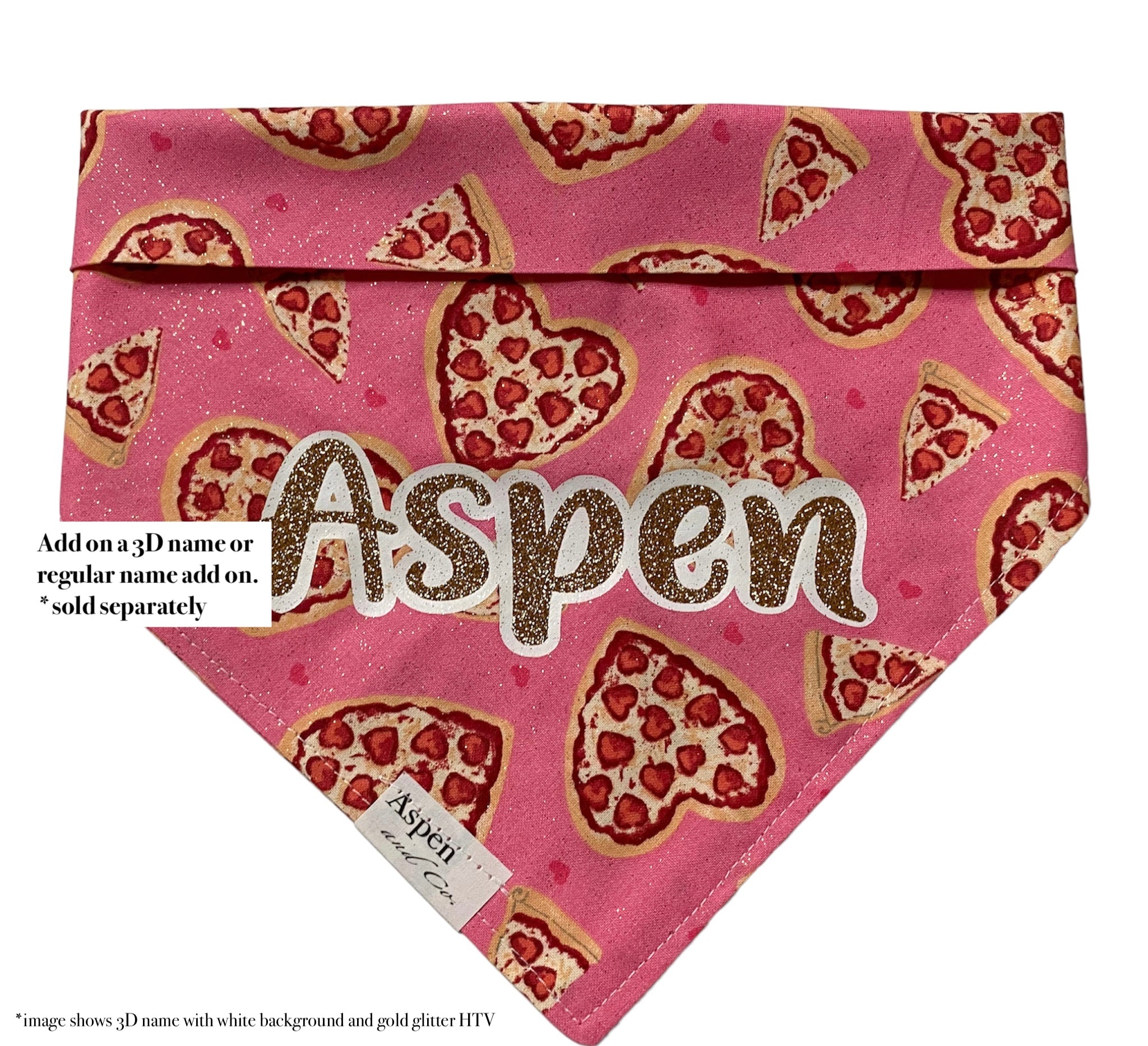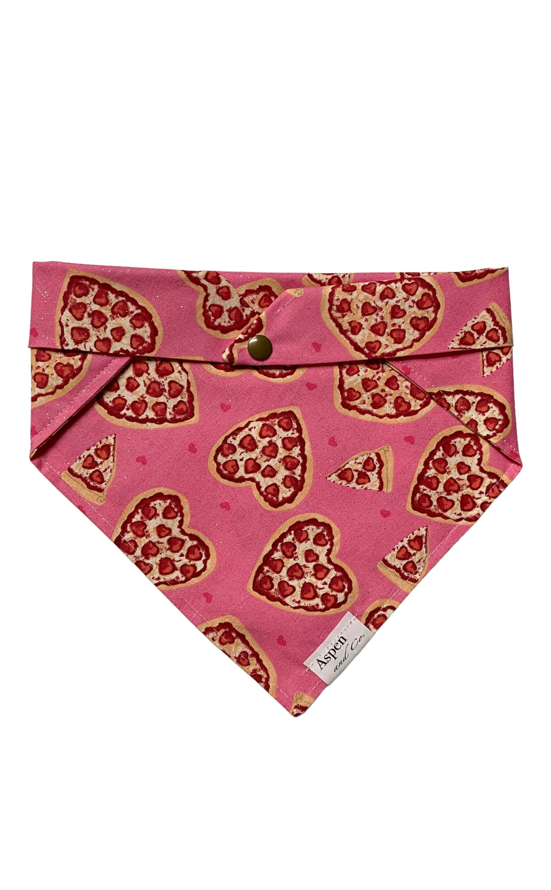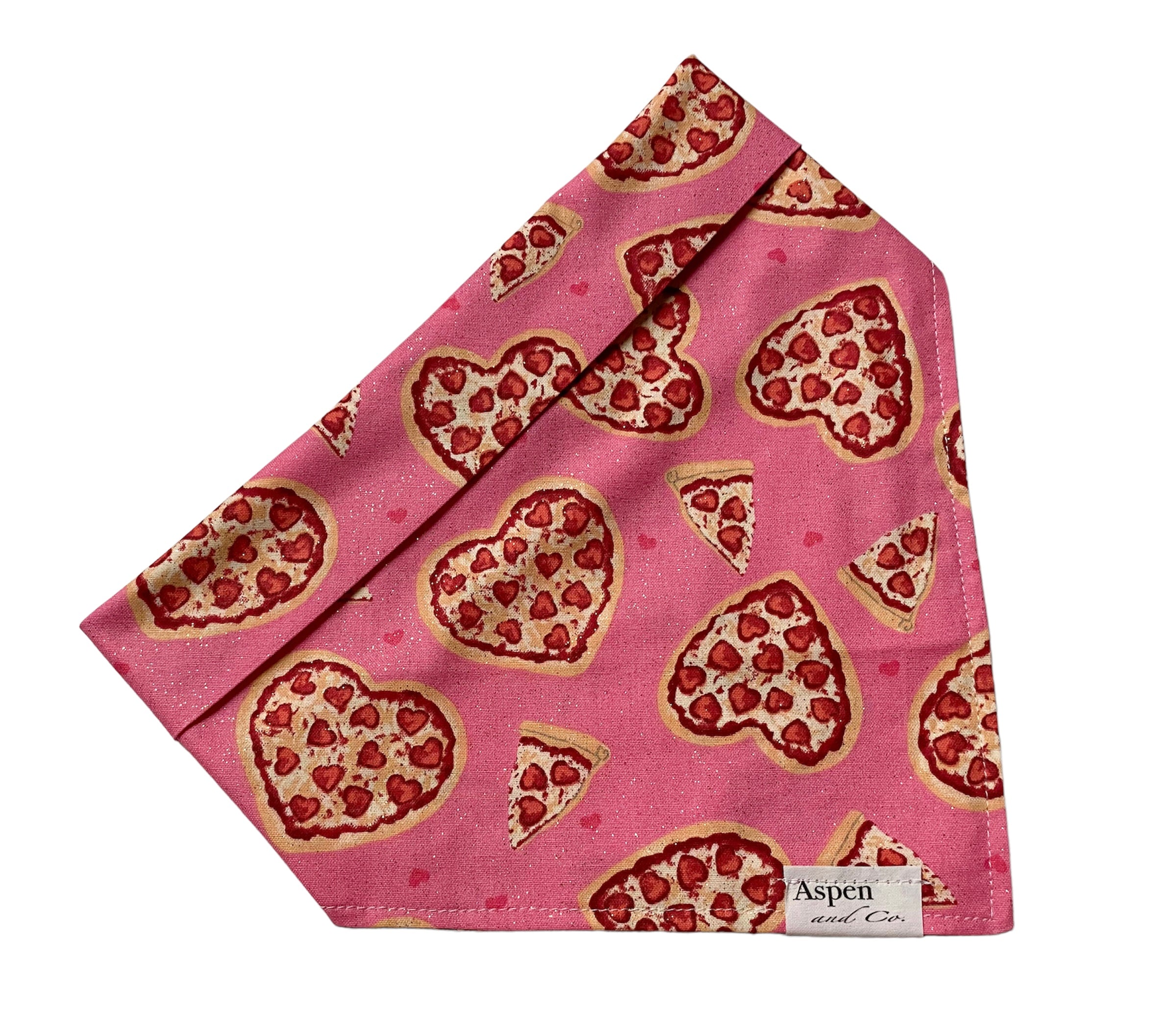 Get your pup ready for a pizza party with our Pupperoni dog bandana! Made of lightweight cotton, this pink glittery bandana features heart shaped cheese and pepperoni pizzas. Looking for even more paw-some style? Add on our dog hair bows (sold separately)!