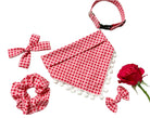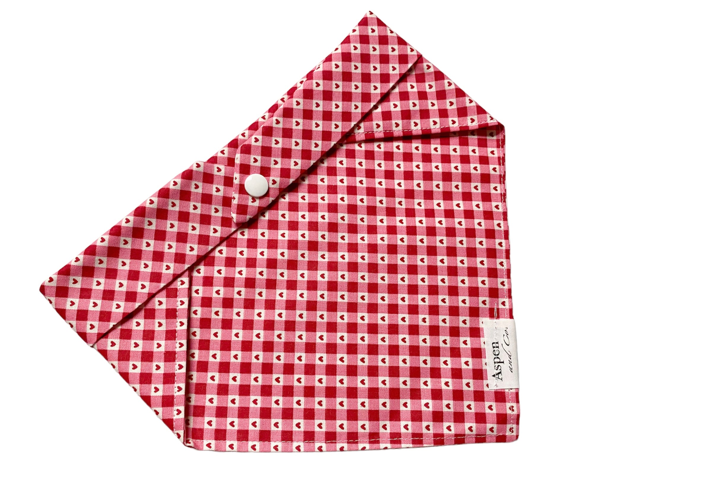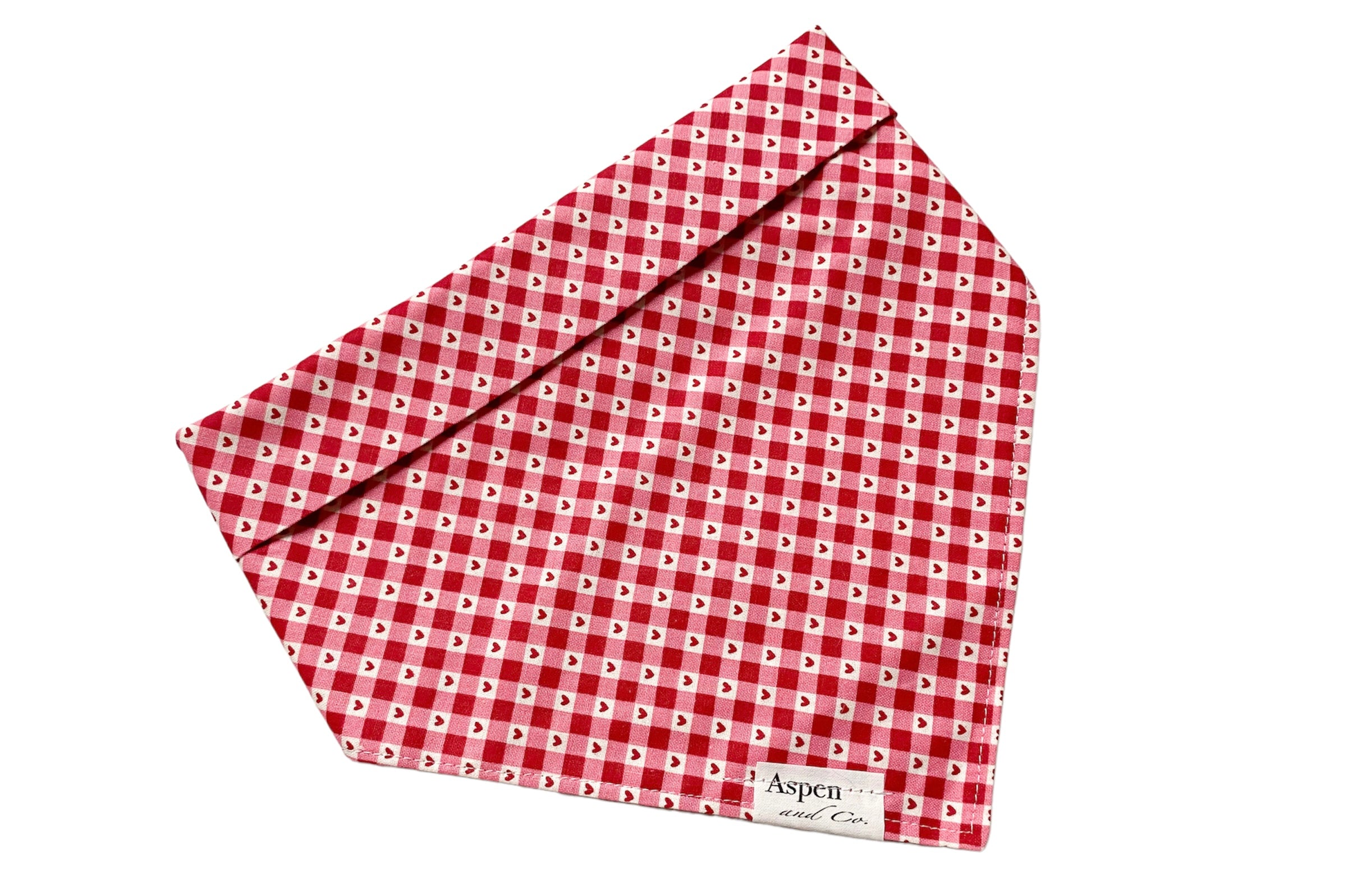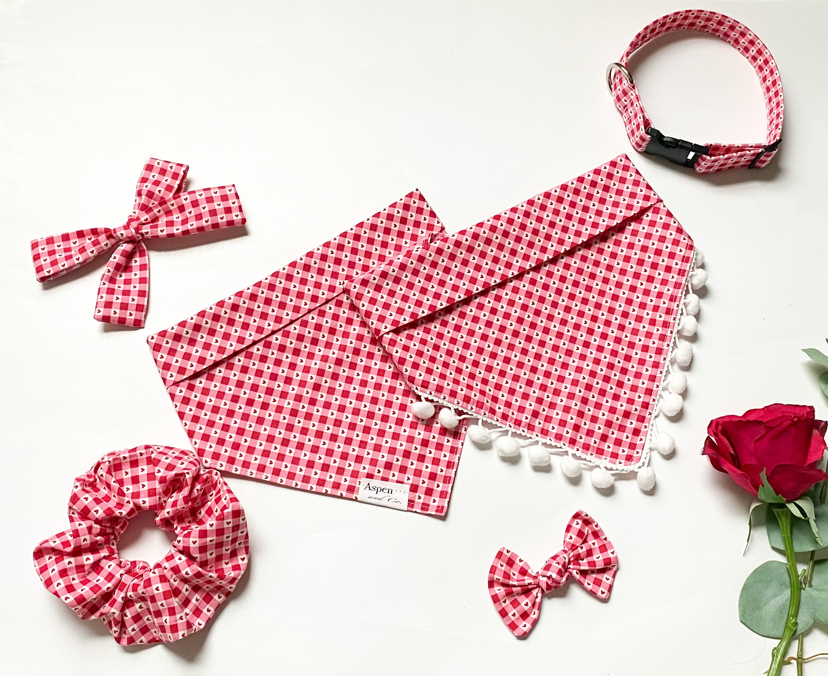 Celebrate the love for your furry friend with Puppy Love bandana. Perfect for a Valentine's Day picnic, this lightweight cotton bandana comes in a charming plaid design. Choose from a variety of styles, including ones with cute pom pom trim. Match with a coordinating collar or hair bow for the ultimate doggy fashion statement.