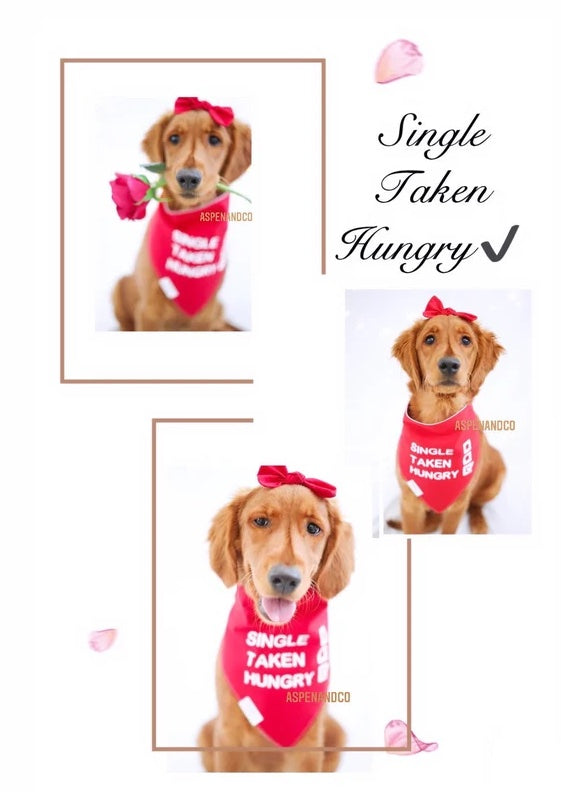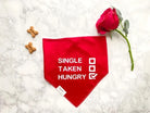 Show off your single, taken, or hungry status with our lightweight cotton dog bandana. Perfect for dogs and their owners alike, this bandana adds a playful touch to any outfit. Embrace your status with style and humor!