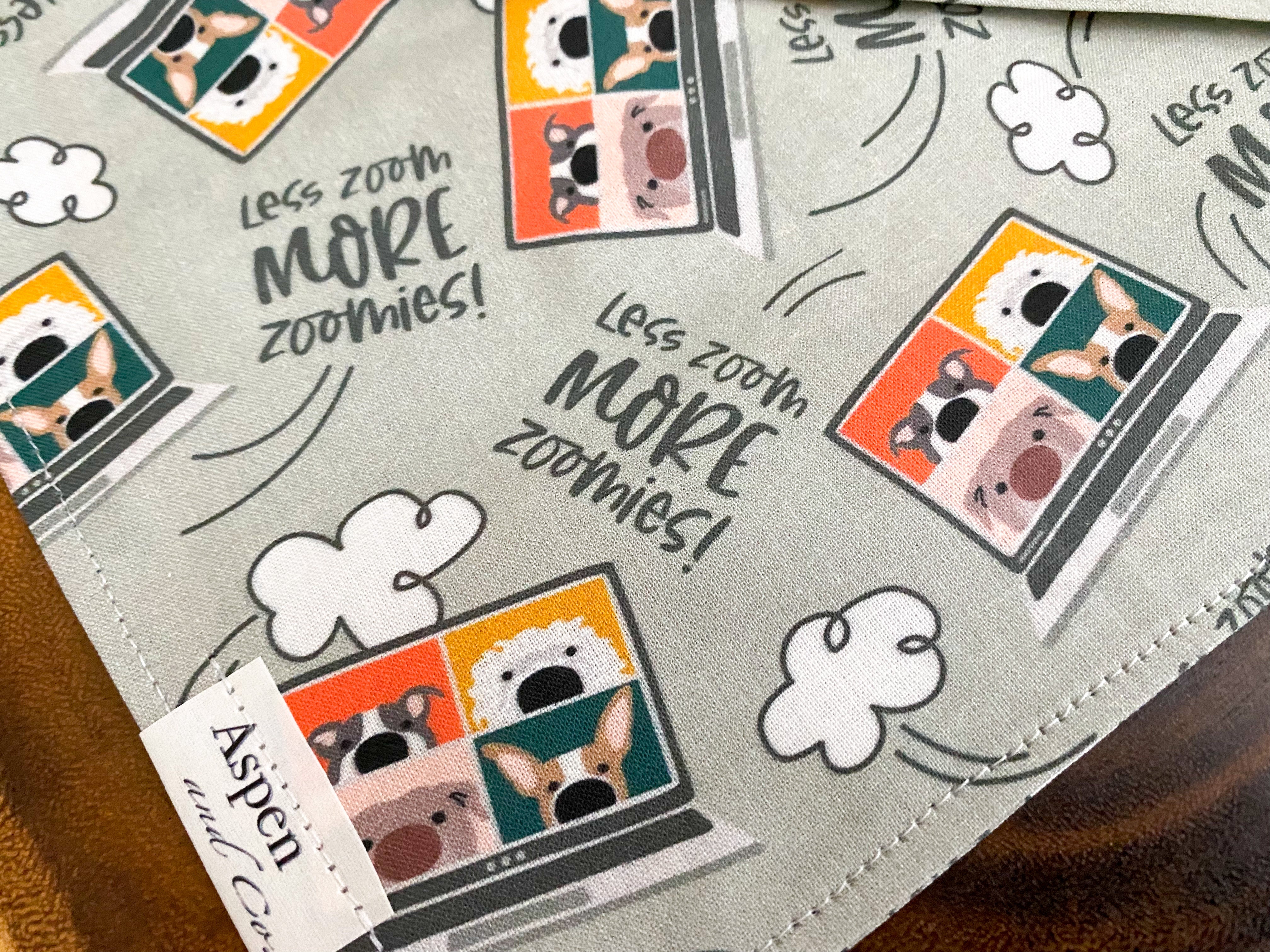 Work from home just got more fun with Zoomies - the perfect bandana for your furry "co-worker." Made from premium cotton, these bandanas will add a touch of humor to your tele-meetings and computer work. Get ready for some "pawsitively" funny dog meetings with Zoomies!